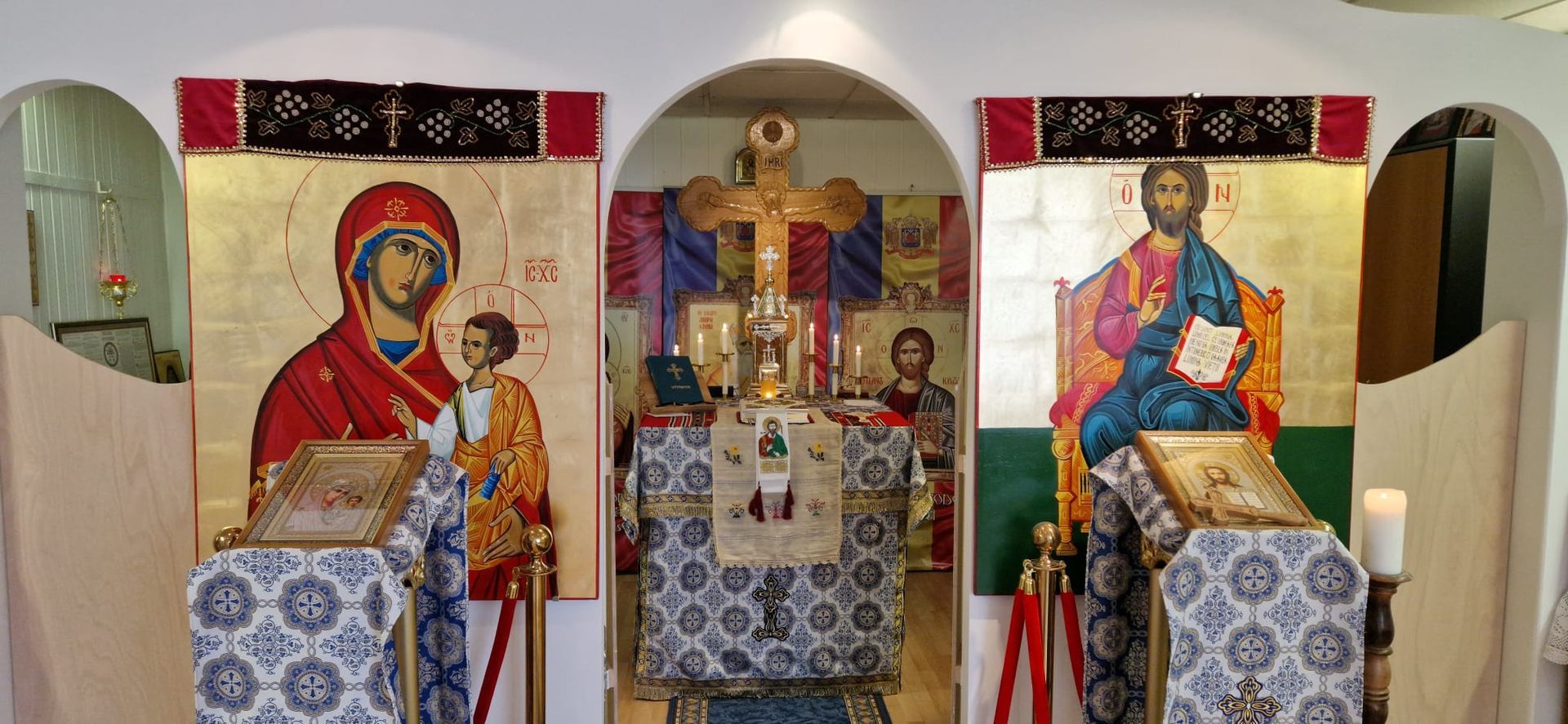 Таким образом, по доброй воле нескольких душ, любящих красоту и традиции, под тщательным наблюдением отца Влада, Иконостас в румынском храме в Эмдене, который находится по адресу Emsmauerstraße 3, 26721 Emden.